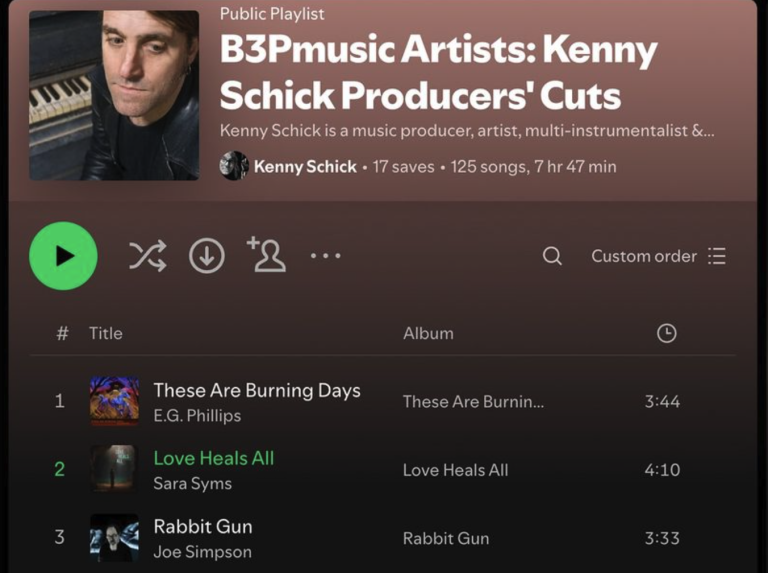 Spotify: Kenny Schick Producer’s Cuts Playlist